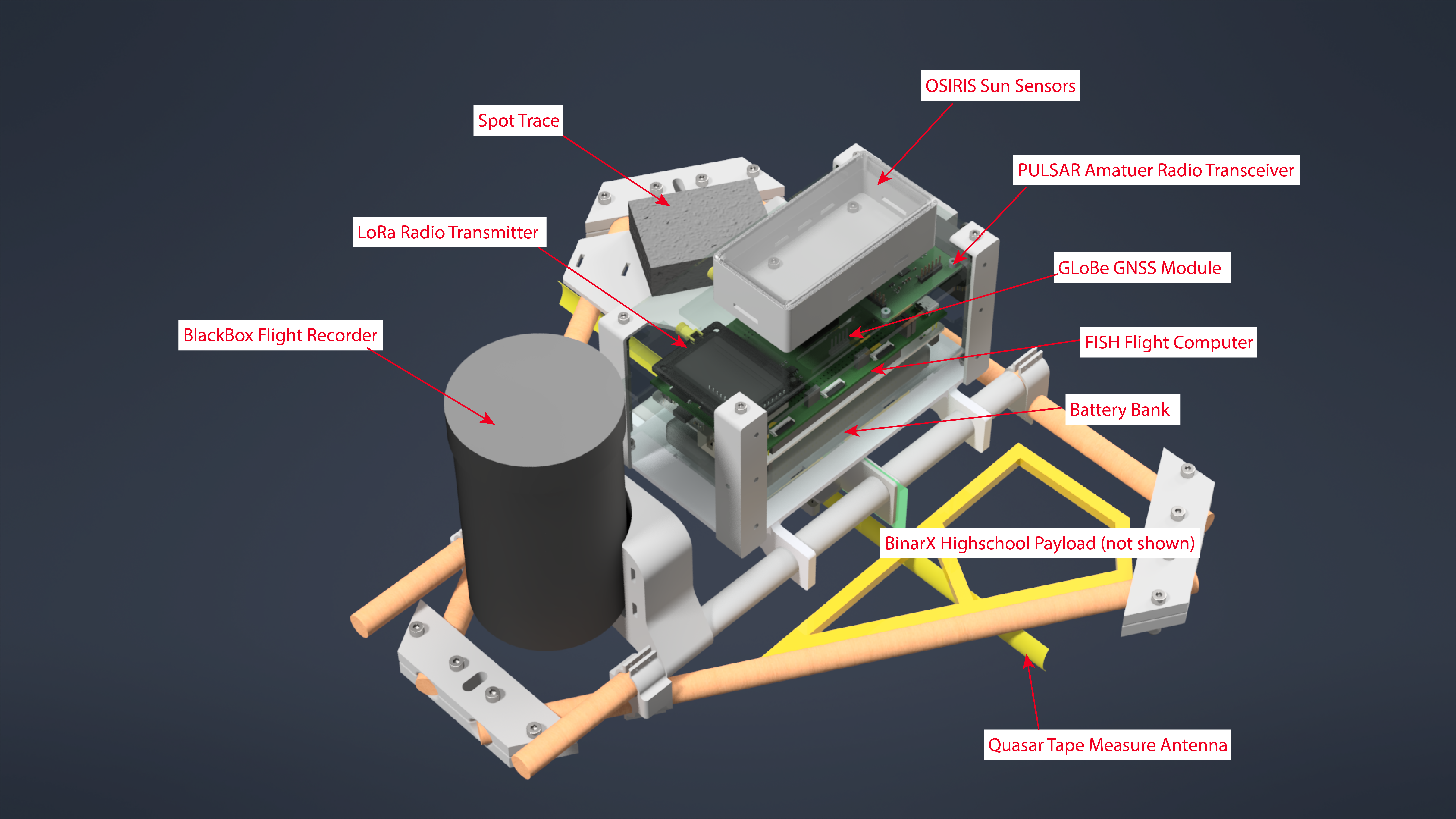 STRATOS served as an integration platform for our preliminary CubeSat subsystems. In addition to our own systems, we flew a High-School developed payload from the BinarX program.
